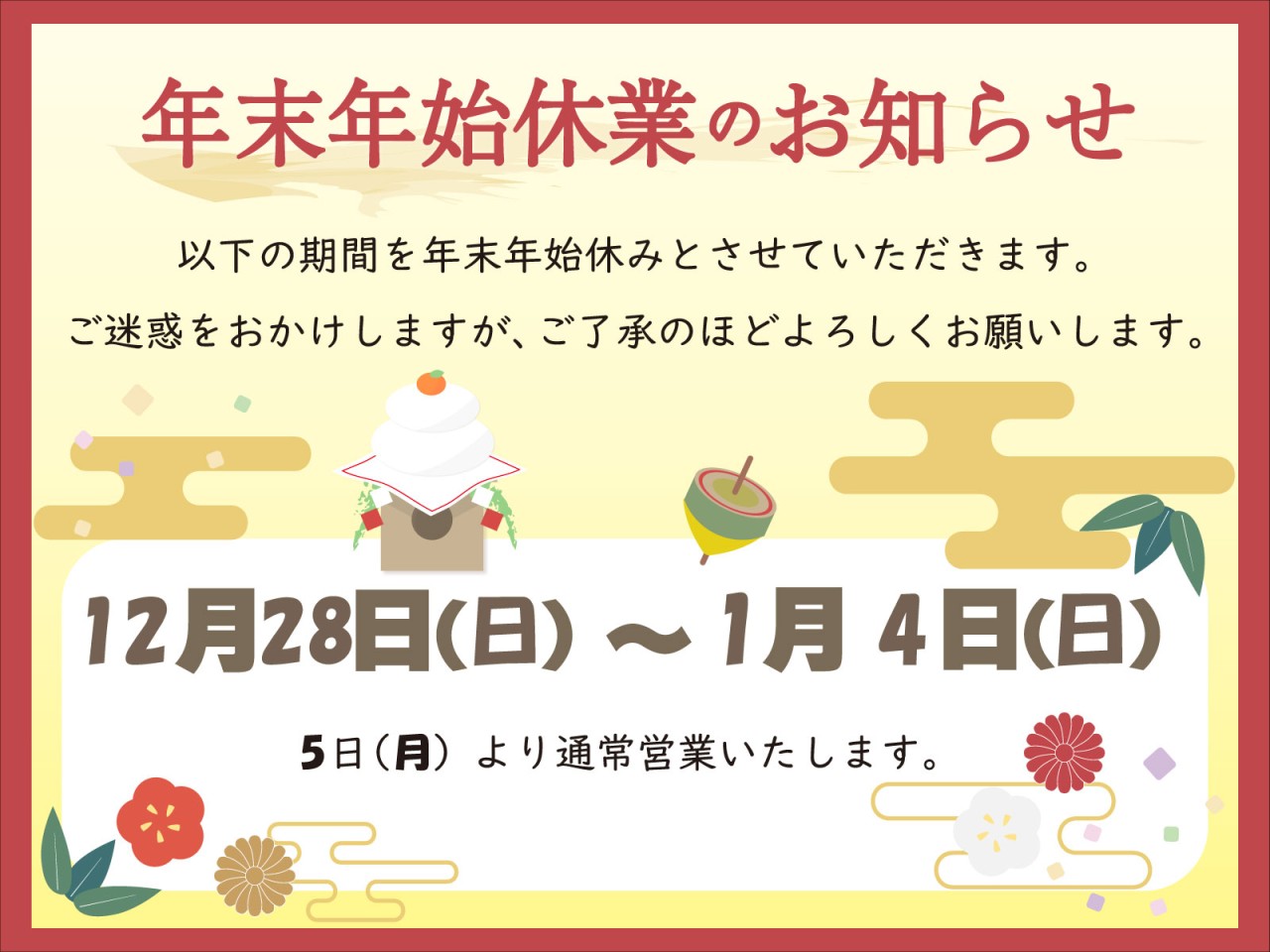 誠に勝手ながら、下記の期間を実店舗 年末年始の休業とさせていただきます。 お客様につきましてはご迷惑をおかけいたしますが、何卒ご理解いただきますようお願い申し上げます。 【年末年始 休業期間】 2025年12月28日(日 […]
